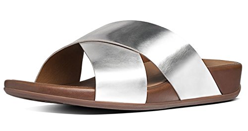 Best Seller! Fitflop Aix Slide Womens Other Fabric Sandals (6.5 UK, Silver FV1) Review